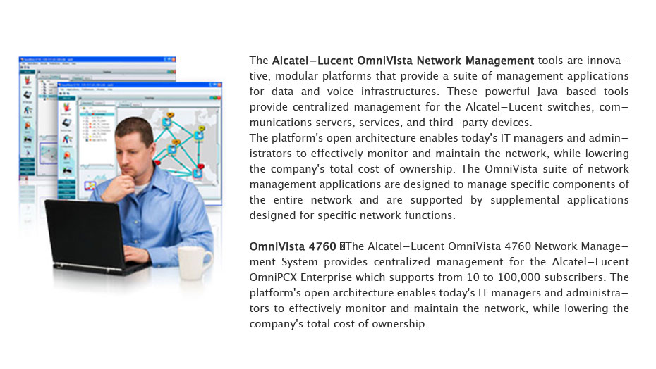 The Alcatel-Lucent OmniVista Network Management tools are innovative, modular platforms that provide a suite of management applications for data and voice infrastructures.