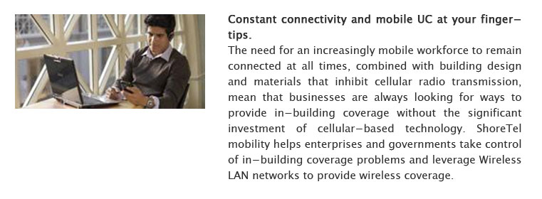 ShoreTel Mobility enables businesses of all sizes to integrate leading– and loved –smartphones and tablets securely, simply and cost-effectively, with existing enterprise communication and applications and infrastructure.
